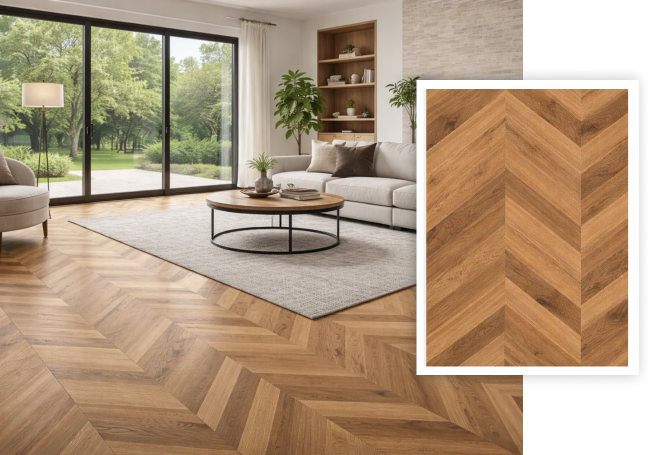 Chevron wood flooring delivers a clean, modern pattern with sharp lines and a sense of movement that elevates any interior. Precision-crafted for a bold yet elegant finish.