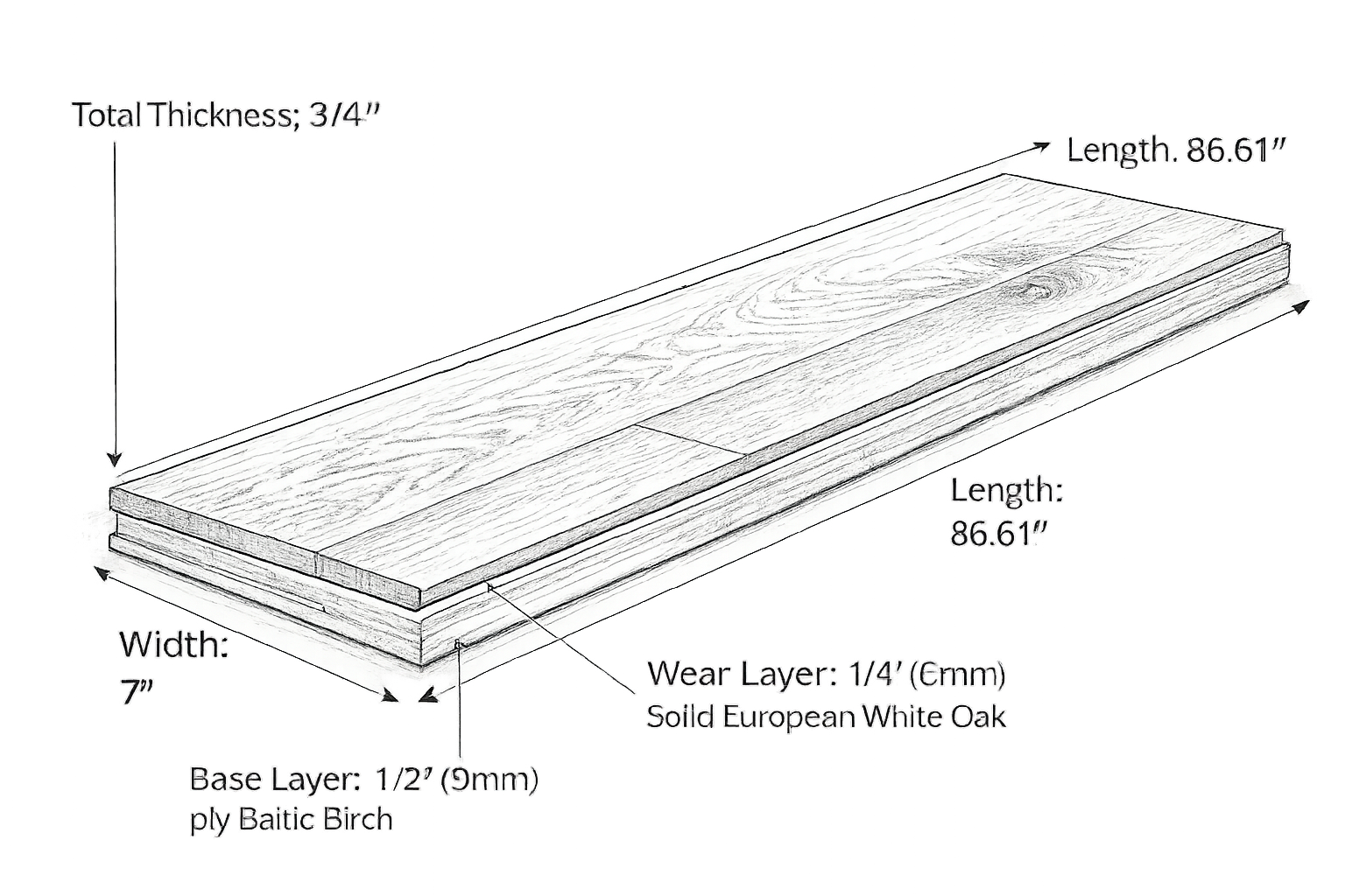 Engineered wood flooring is constructed with a real hardwood wear layer bonded to a stable plywood base, making it more dimensionally stable than solid wood—especially in spaces with fluctuating humidity or underfloor heating. Solid wood is a single piece of hardwood throughout but can be more sensitive to moisture changes.