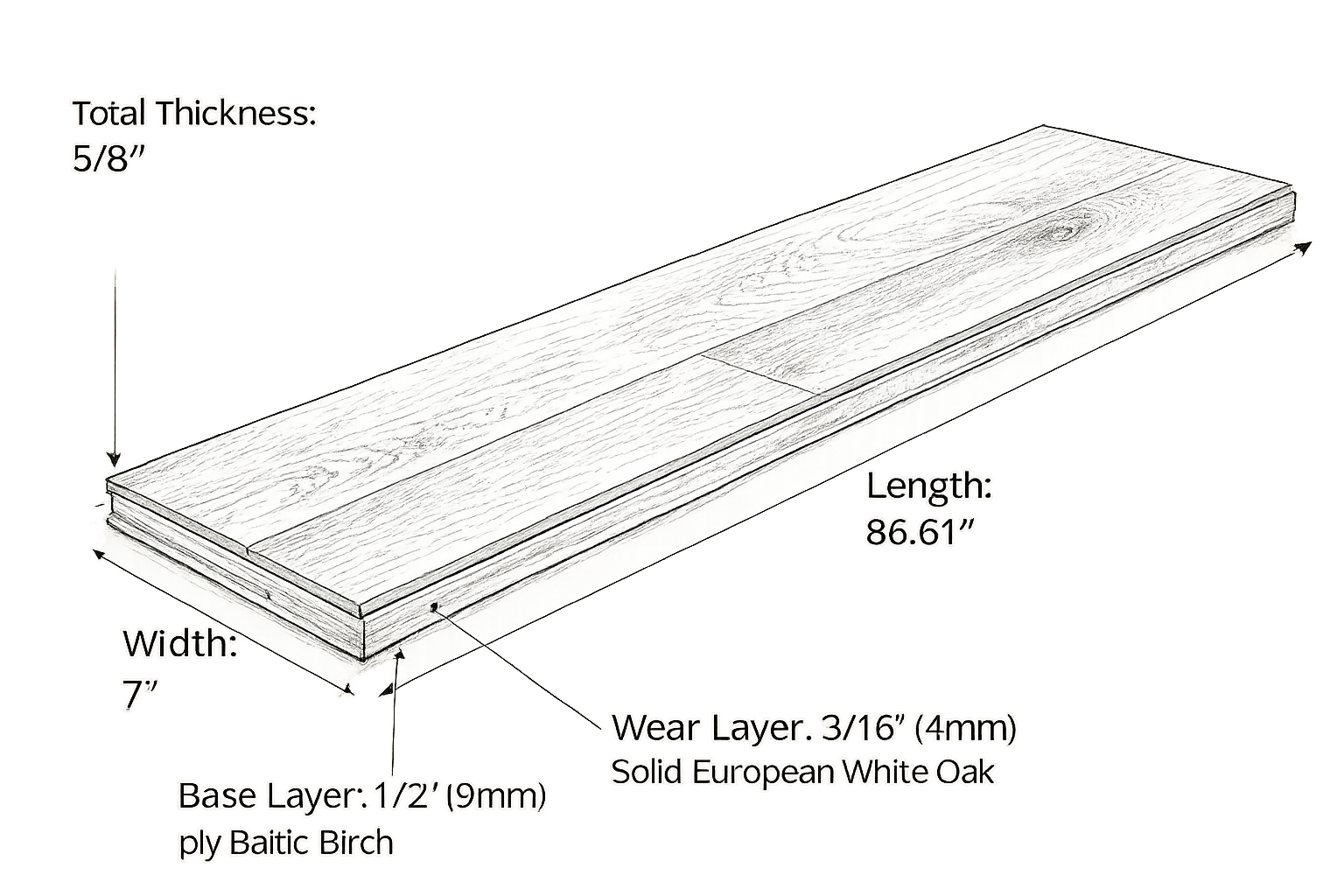 Total Thickness 5/8 x 7” Width x 86.61” Length